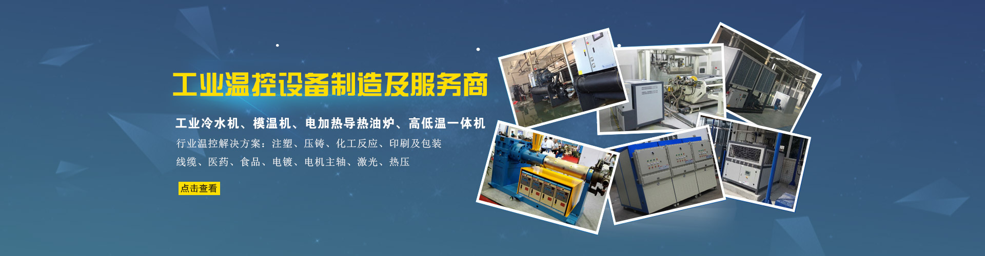水溫機(運水式模溫機) 油溫機(運油式模溫機) 工業冷水機 / 冷凍機 高低溫一體機 行業專用溫控設備 非標溫控設備定制